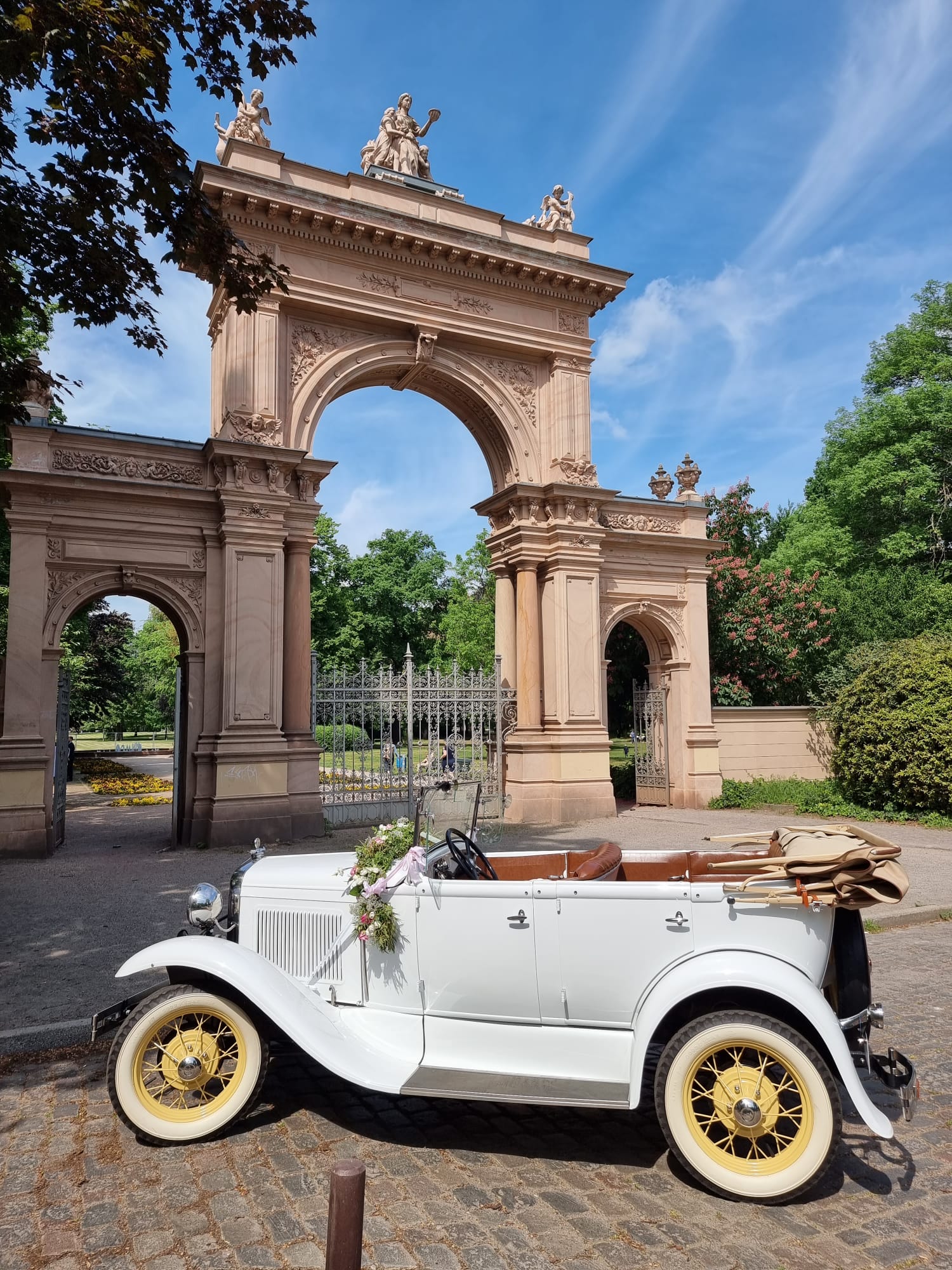 Bei traumhaftem Wetter ist die Brautlimousine zu Gast am Schloss Friedrichsfelde. Das Schloss ist eine Außenstelle des Standesamt Lichtenberg und dient mit dem Schlossgarten auch als tolles Hintergrundmotiv für die Fotoaufnahmen der Brautpaare.