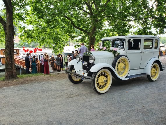 Obwohl es gestern Nachmittag in Berlin heftigstes Unwetter gab, fuhr die Braulimousine ohne einen Regentopfen, mit einem ganz tollen Paar zu deren Hochzeitsveranstaltung, an der Anlegestelle der „Van Loon Restaurantschiffe“ in Kreuzberg vor.