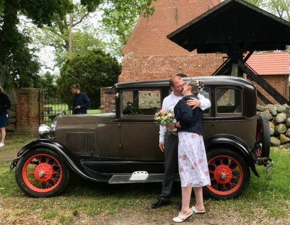 Bei herrlichem Wetter war die Brautlimousine heute zu Gast vorm Rathaus Treptow. Für das Brautpaar war das Automobil eine gelungene Überraschung.