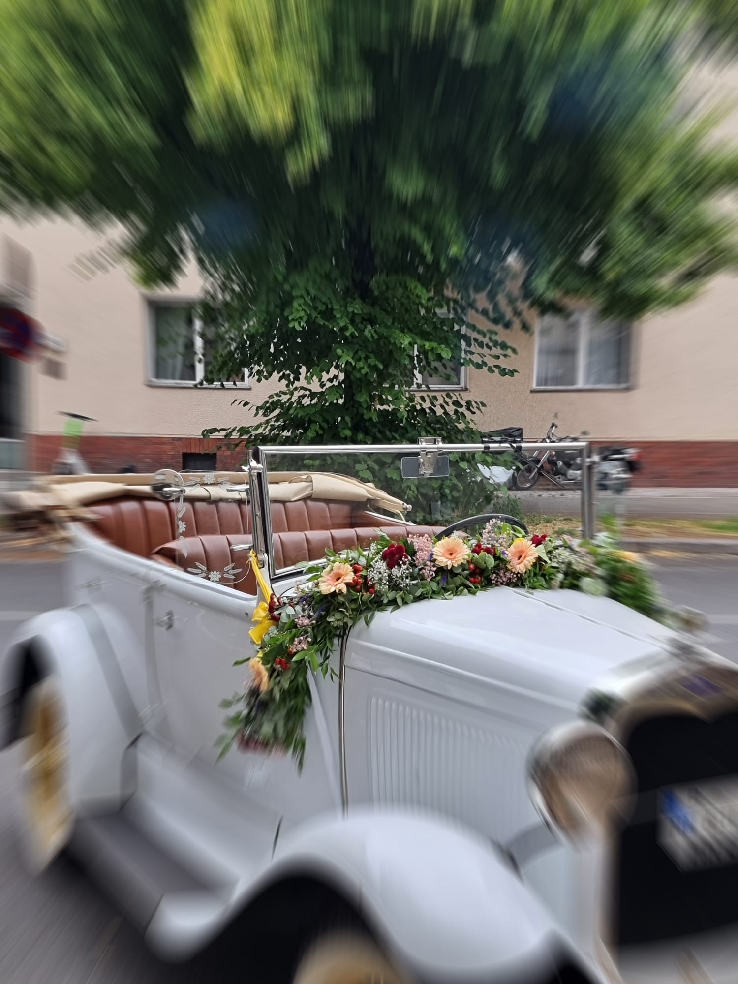 Bei herrlichem Wetter war die Brautlimousine heute zu Gast vorm Rathaus Treptow. Für das Brautpaar war das Automobil eine gelungene Überraschung.